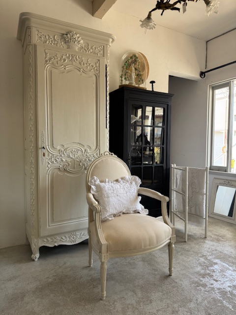 フランスアンティークならではの優雅な装飾と美しいフォルムをお楽しみいただける大変素敵な一脚です。