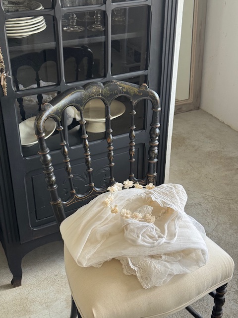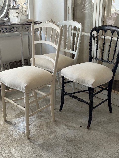 座面は1900年初頭の厚手で上質なエクリュリネンに張り替え済み。