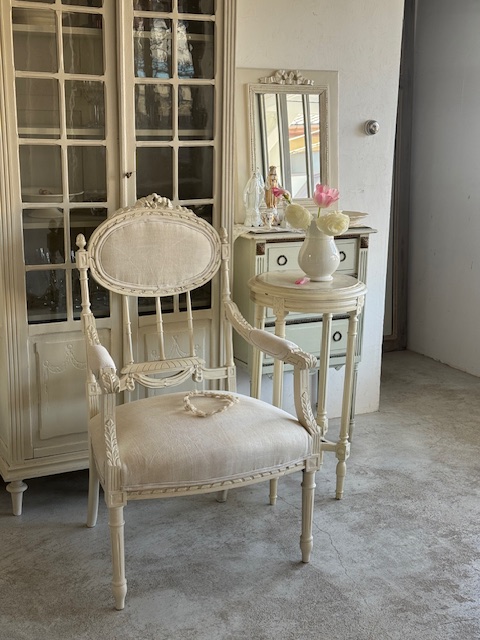 リボンモチーフ装飾付き サロンアームチェア(同型2脚入荷)