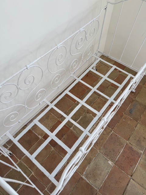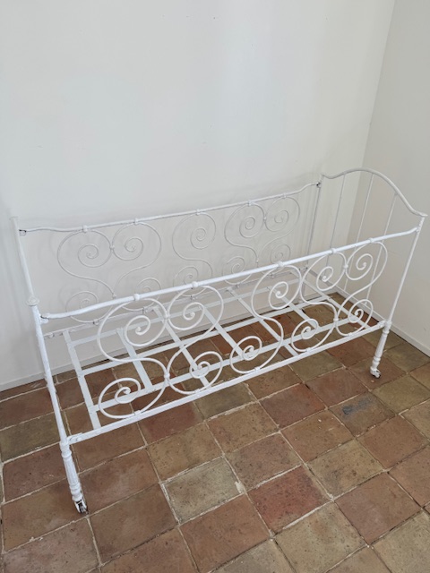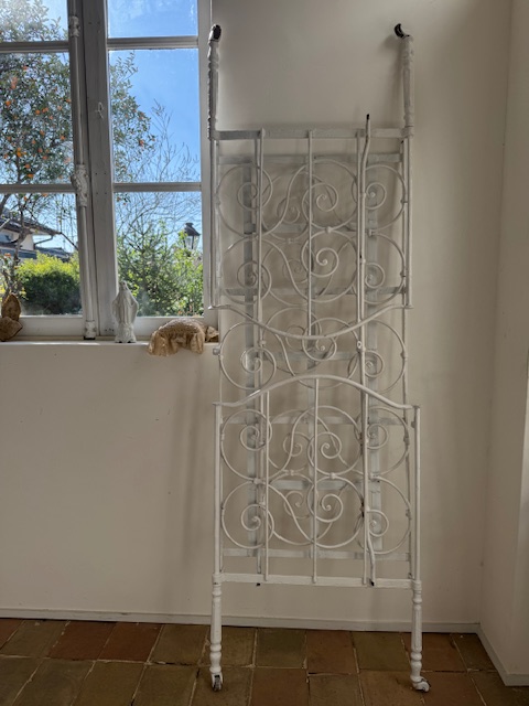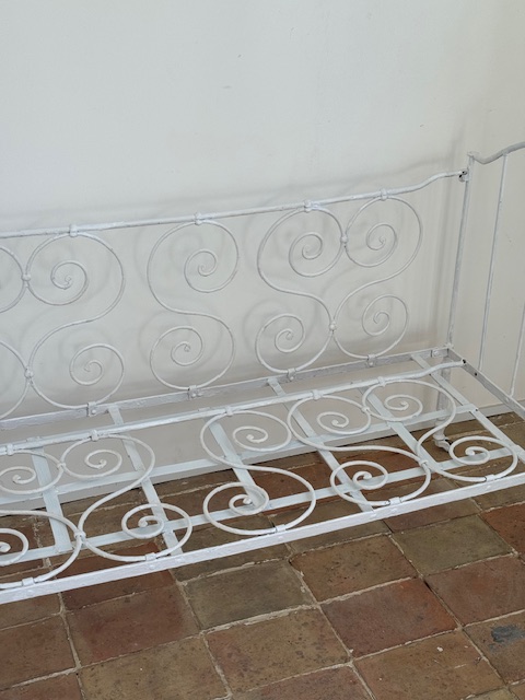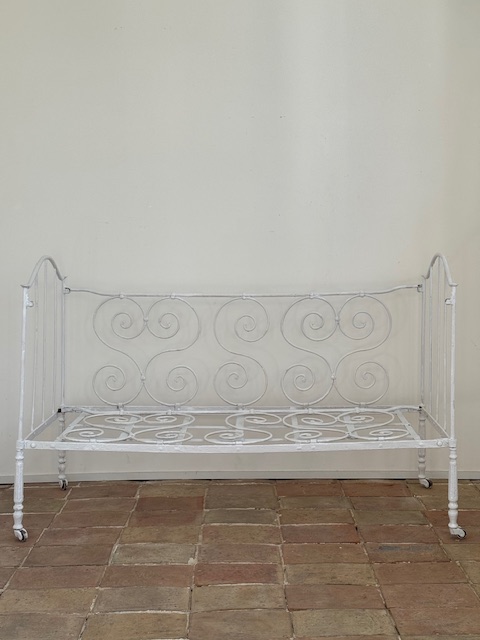 繊細に描かれたくるくるとしたアイアンの装飾や脚元の優美なデザインが大変美しくシンプルでありながらも印象的な存在感があります。