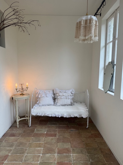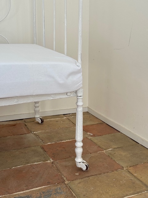 現在では片側を倒しソファのようにお使いいただくのがフランス流スタイル。空間に軽やかさを添えてくれる一品です。