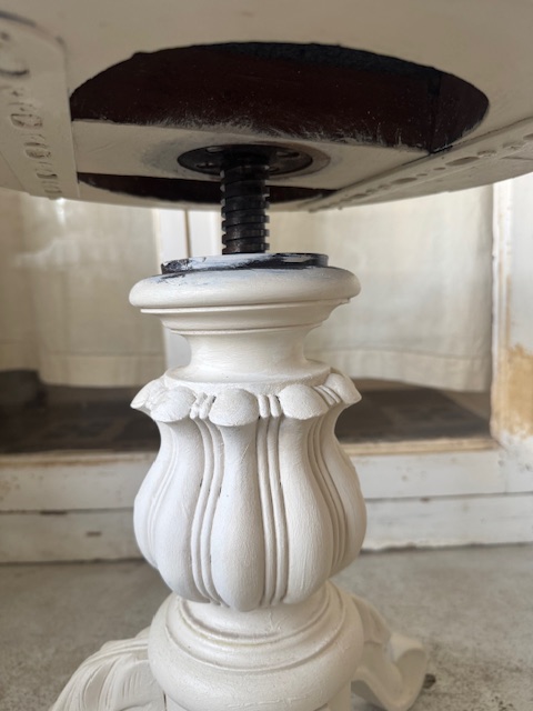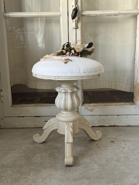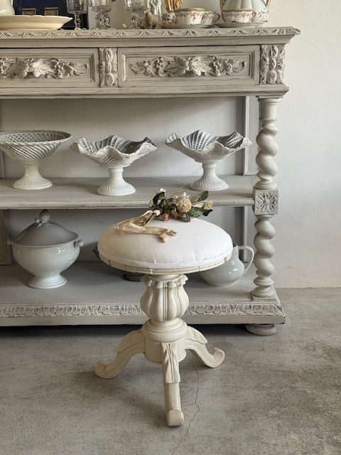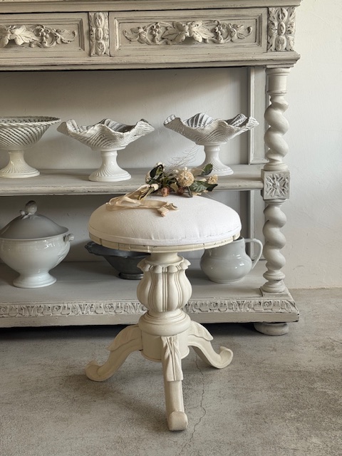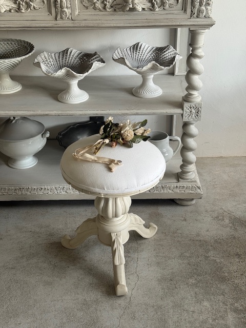 座面は回転式で高さの調整が可能です。機能性と美しさを兼ね備えたアンティークならではの魅力があります。