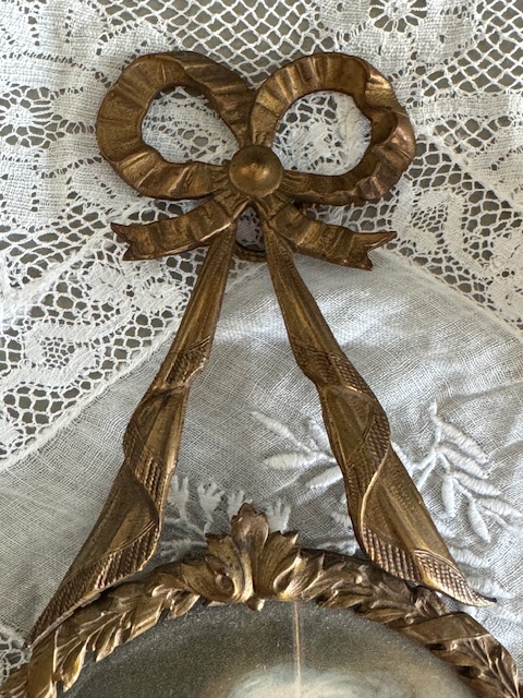 繊細な真鍮製のリボンモチーフが印象的で当時ならではのエレガントな雰囲気をまとった大変美しいお品です。