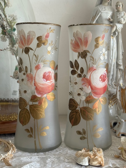 1800年代のフランスアンティーク希少な手描きのフラワーベースです。
