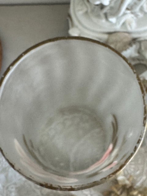 口縁にはアンティーク特有の燻したようなゴールドラインが施され落ち着いた輝きが全体を優雅に引き締めています。