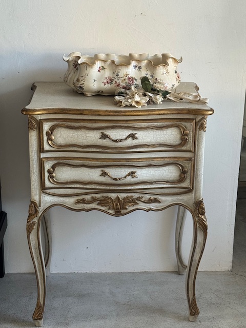 足元にも金彩の装飾がさりげなく入り、優雅で調和の取れたフォルムを完成させています。全体として気品と華やかさを兼ね備えた仕上がりで、当時のフランス陶器の美を存分に堪能できるお品です。