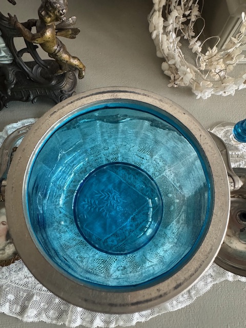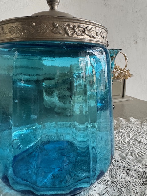 1900年初頭の大変美しいブルーの吹きガラス製ポット。