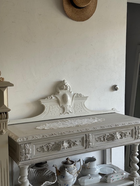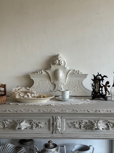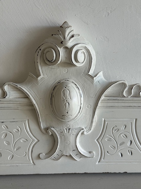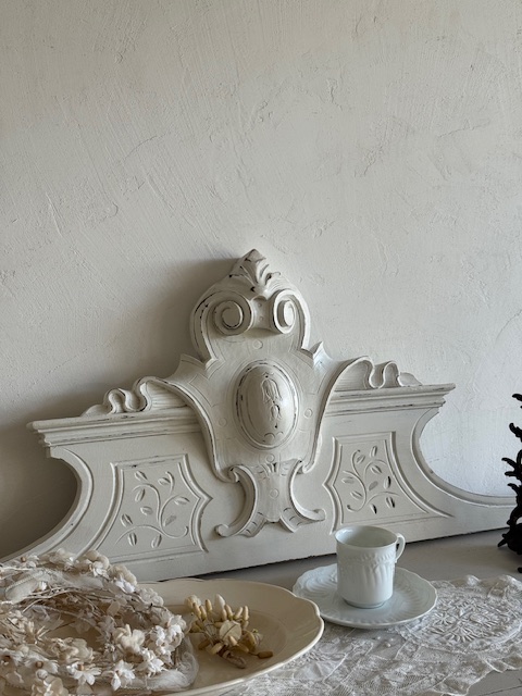 1900年初頭 フランスアンティークオフホワイト 木彫り装飾ヘッド