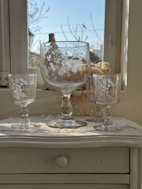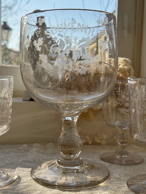 これは、当時フランス各地で行われていた祝祭や村のお祭りの際に記念品として作られたグラスと考えられその土地の温かな時間や人々の賑わいを今に伝えてくれるお品です。