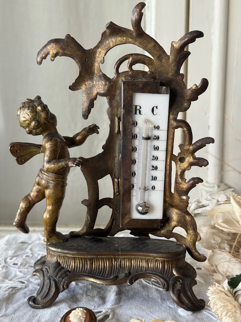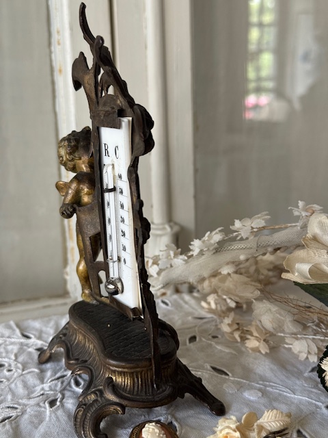 1800年代後半から1900年初頭フランスアンティークの温度計付きオブジェ。