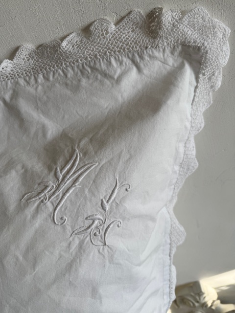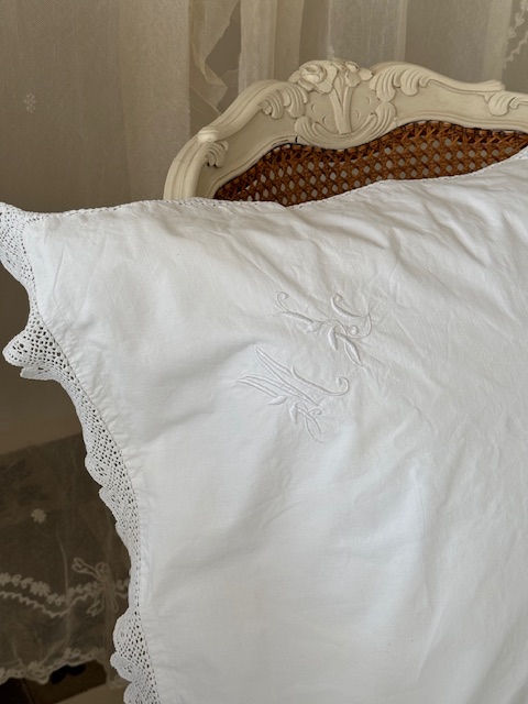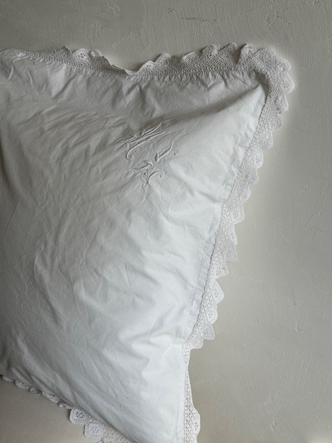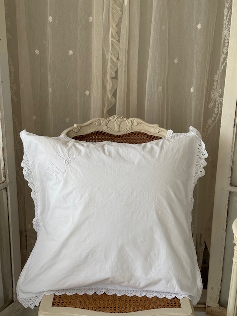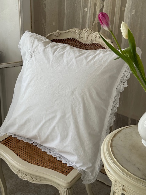 1900年初頭のフランスアンティーク存在感のある大きめサイズのホワイトクッションカバーです。