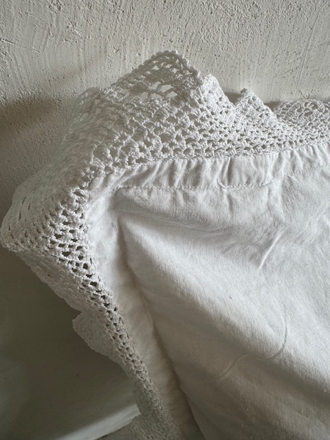 周囲にはすべてコットン素材の手刺繍によるクロシェレースが贅沢に施されています。