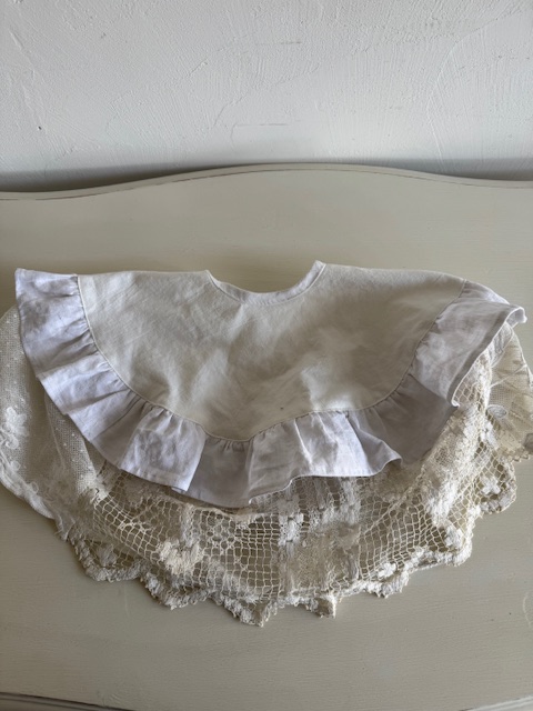 本体部分には1900年初頭の上質なフランスアンティークリネンを使用しリネンのフリルがやさしく縁取られています。