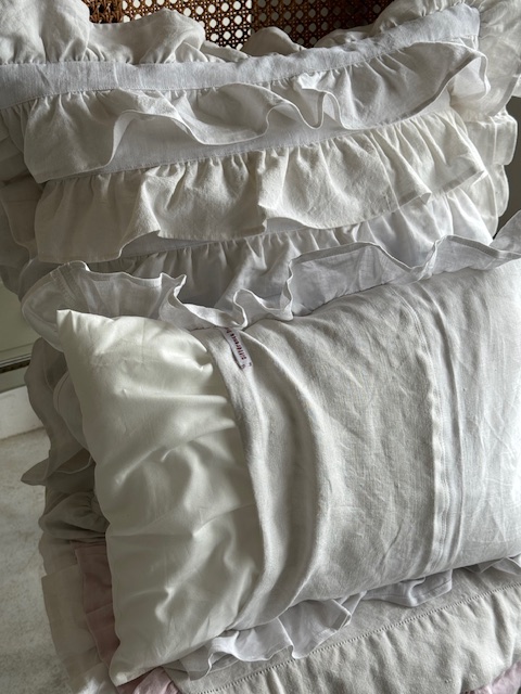 周囲を囲むたっぷりとしたフリルがアンティークならではの優雅さと温かみを添えています。