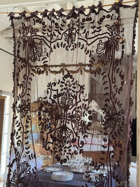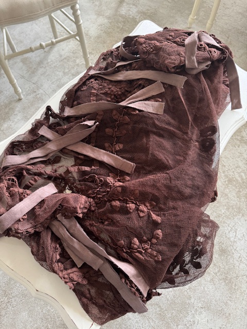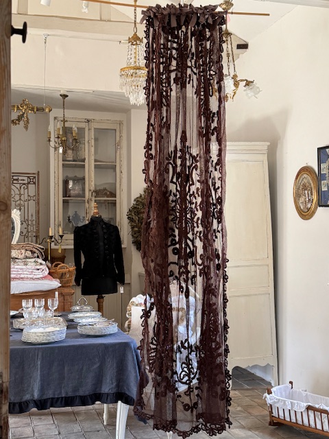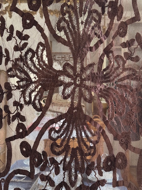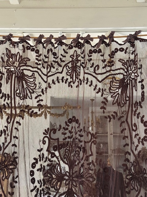1900年初頭のフランスアンティーク深みのある濃いブラウンが印象的なチュールレースカーテンです。