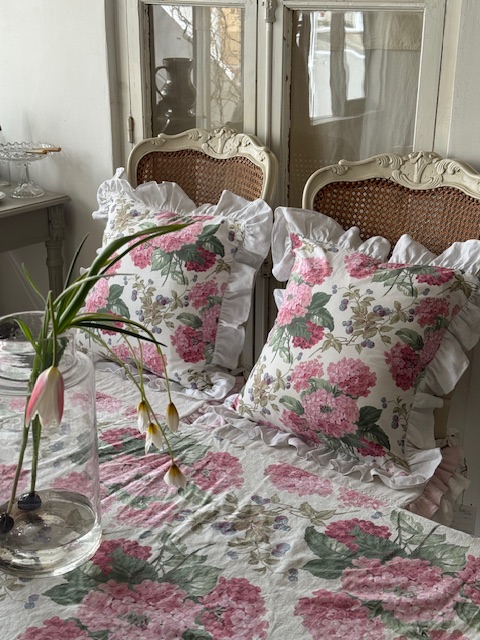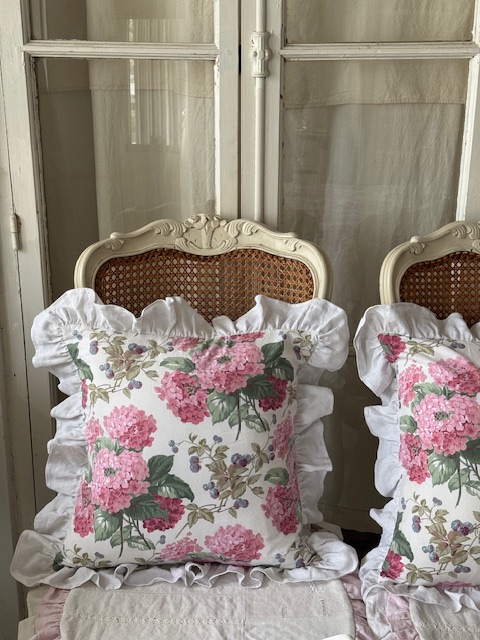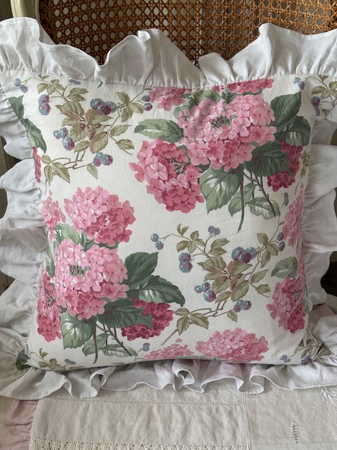 フランスアンティーク生地 ピンクアジサイクッション