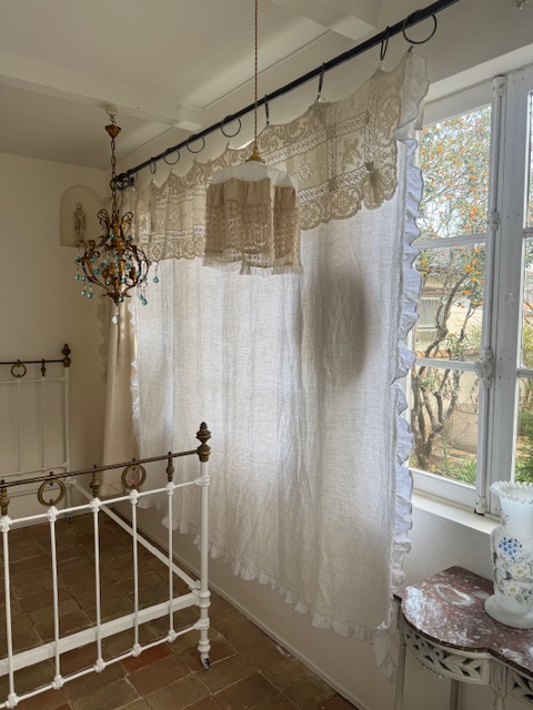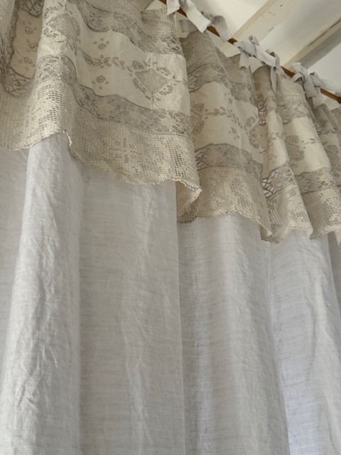 1900年初頭フランスアンティークの大変貴重なリネンカーテン。