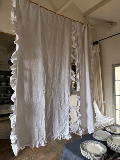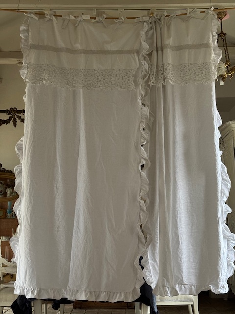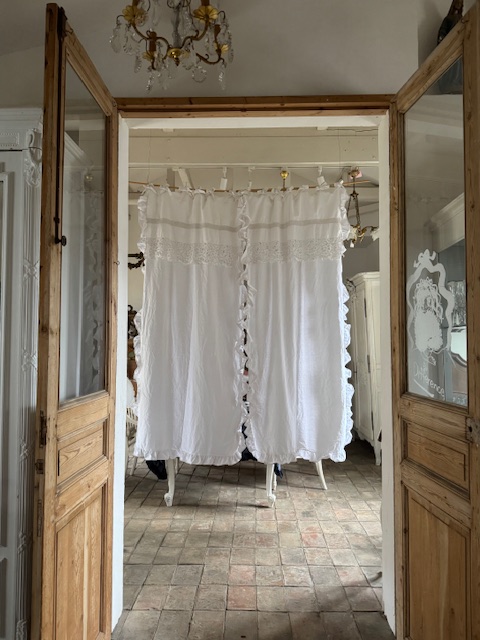 空間をぱっと明るく、柔らかくエレガントな雰囲気にしてくれるアンティークならではの存在感のあるカーテンです。