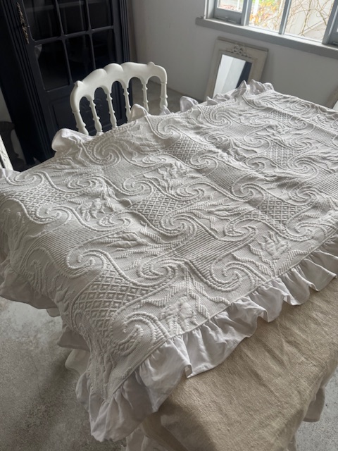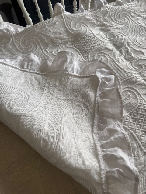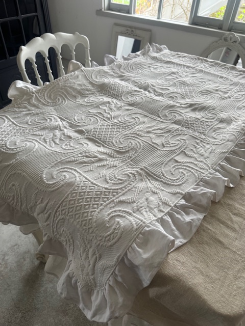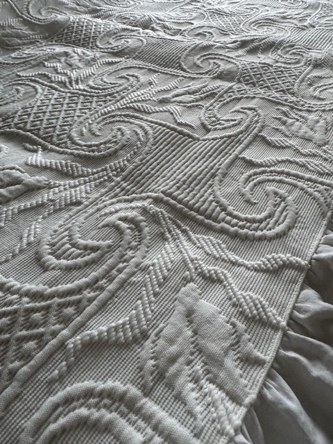 1900年初頭のフランスアンティークホワイトのマルセイユキルトです。