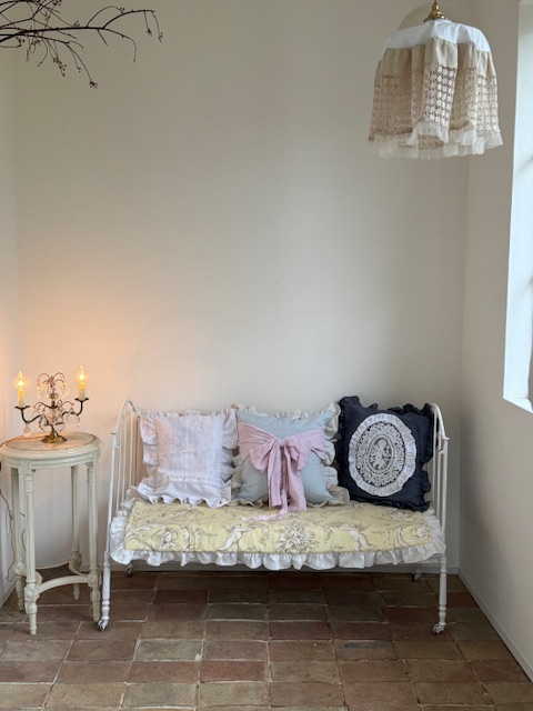 そして周囲を包み込むエクリュのフリルが重なりまるでマリー・アントワネットの時代を思わせるような繊細でロマンティックな世界観。