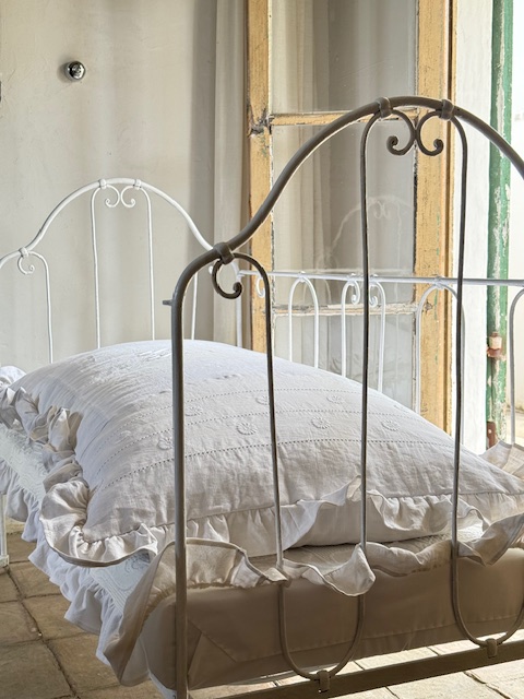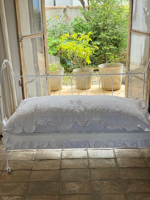 クッションとしてはもちろんフランスアンティークのアイアンベッドに合わせたマットやシングルベッドの背もたれとしてもお使いいただける大きなサイズ感です。
