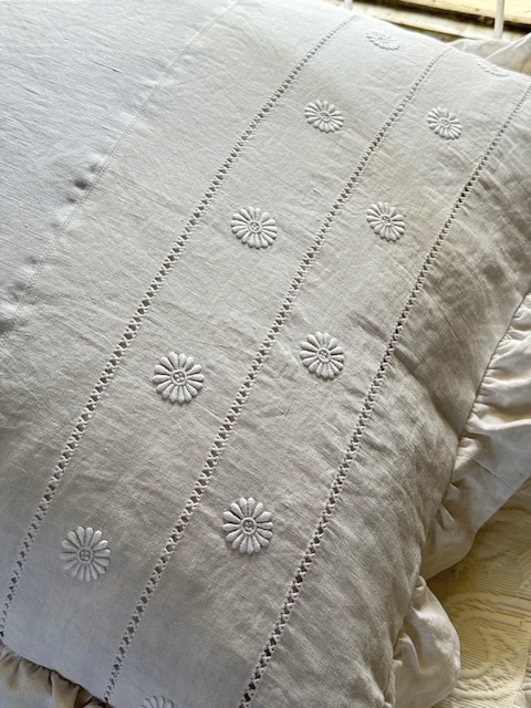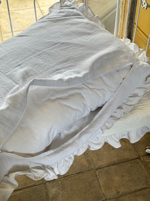 1900年初頭のフランスアンティーク、上質なホワイトリネンを贅沢に使用した特別なお品です。