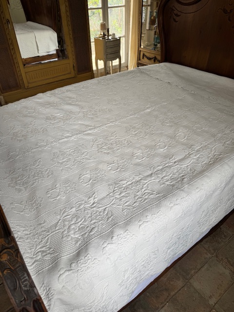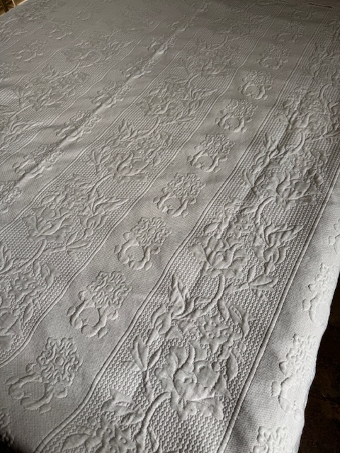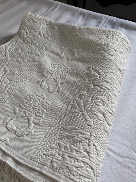 ピケ・ドゥ・マルセイユは18世紀のプロヴァンス地方で発展した高度な織技法で、陰影豊かな立体模様を浮かび上がらせるものです。