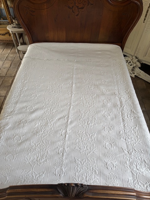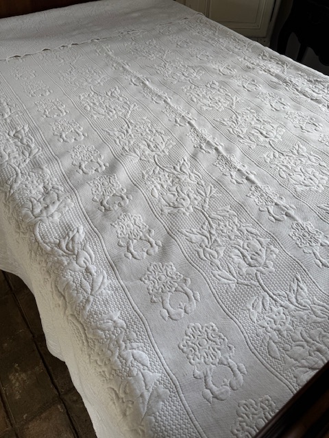 全面にはバラをモチーフとした立体的な文様が施されており、フランス伝統の「ピケ・ドゥ・マルセイユ(Piqué de Marseille)」技法によって表現されています。