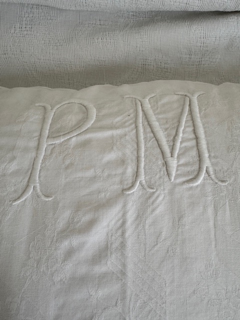 フランスアンティーク 手刺繍リネンクッション