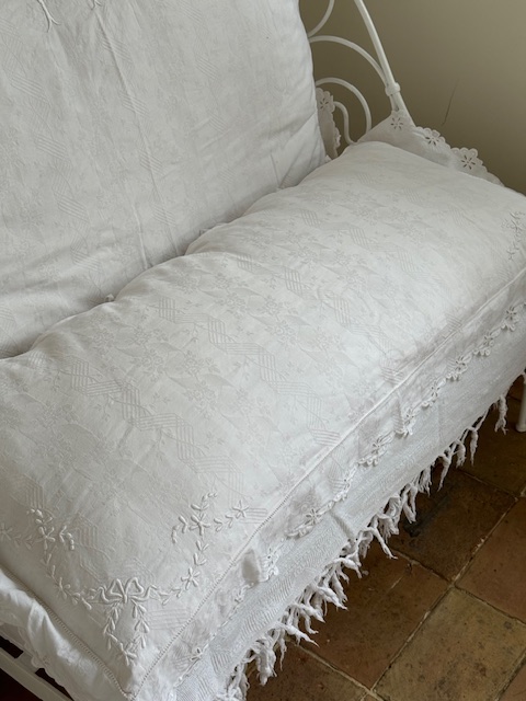 1900年代初頭 フランスアンティーク 手刺繍クッションマット