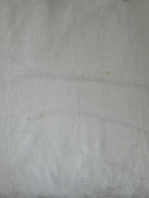 漂白剤を使わず洗浄しておりますため、わずかに薄いシミが見られる箇所がございますが、アンティークならではの風合いとしてお楽しみください。