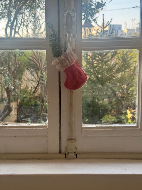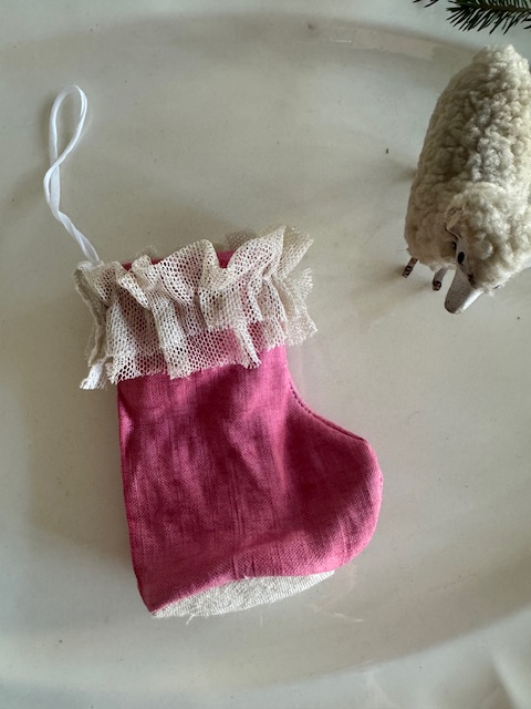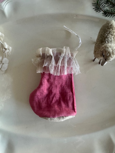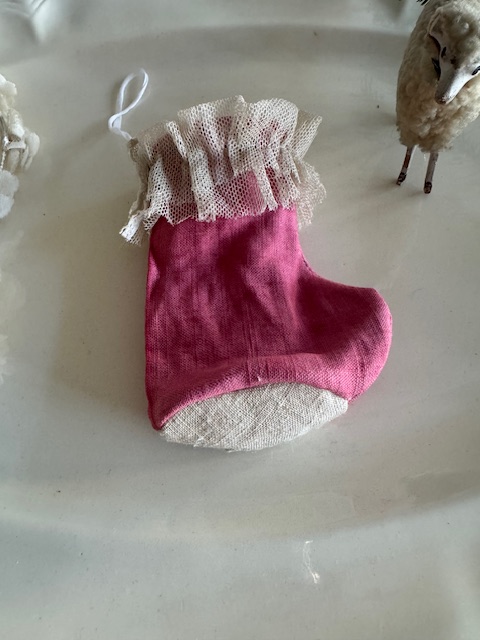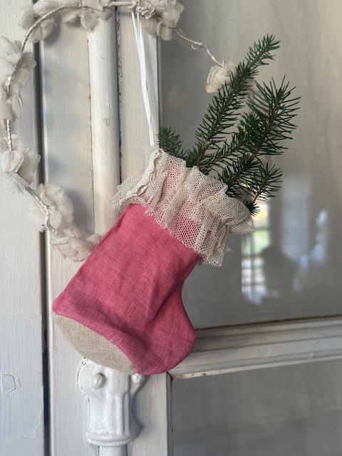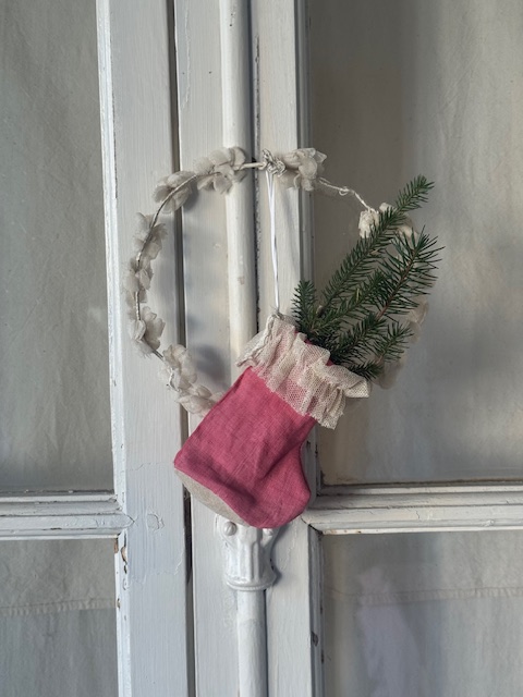 靴下の底部分にはマチがあり、小さなモミの枝やラベンダー、ハーブなどを入れて立体的に飾っていただくと、一層可愛らしい雰囲気になります。