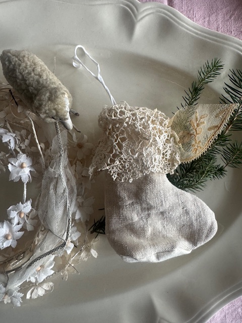 1900年初頭のフランスアンティークのリネンやレースを使用した、Différenceオリジナルのクリスマスオーナメントです。