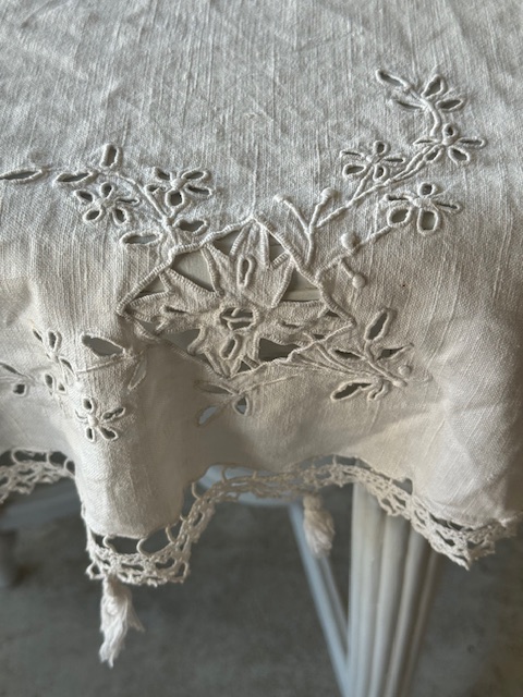 アンティークならではの魅力を存分に感じられる素敵なフランスのテーブルクロスです。