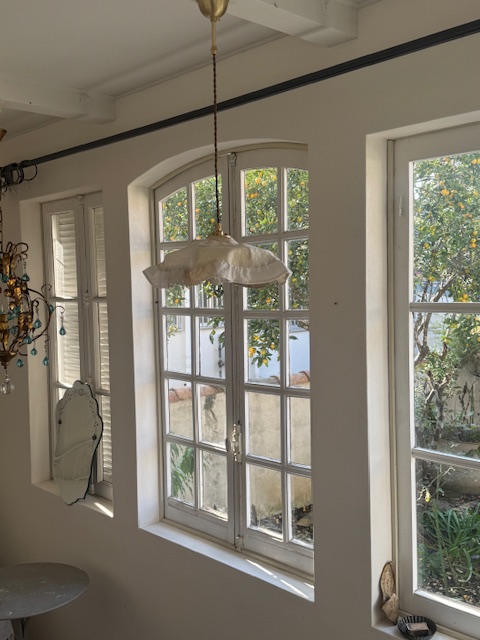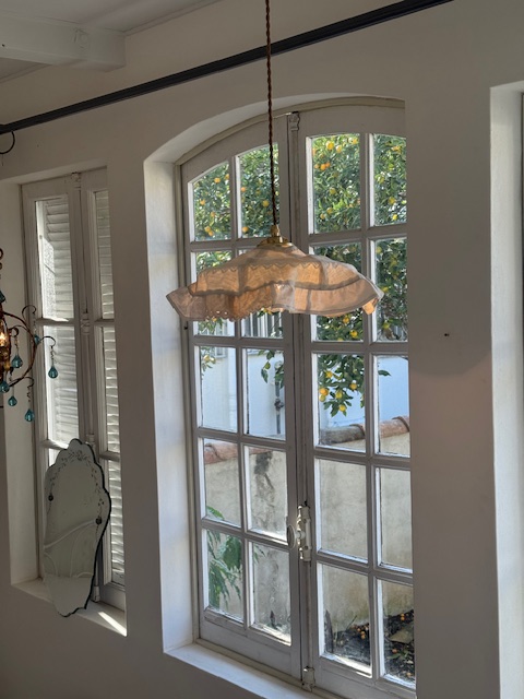光を通すとリネンのさまざまなトーンがふんわりと浮かび上がりフランスの田舎町のような優しい雰囲気をお部屋に広げてくれるとても愛らしいお品です。