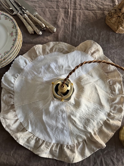 1900年初頭のフランスで作られた大変貴重なアンティークリネンのランプ用カバーです。
