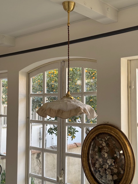光を通すとリネンのさまざまなトーンがふんわりと浮かび上がりフランスの田舎町のような優しい雰囲気をお部屋に広げてくれるとても愛らしいお品です。
