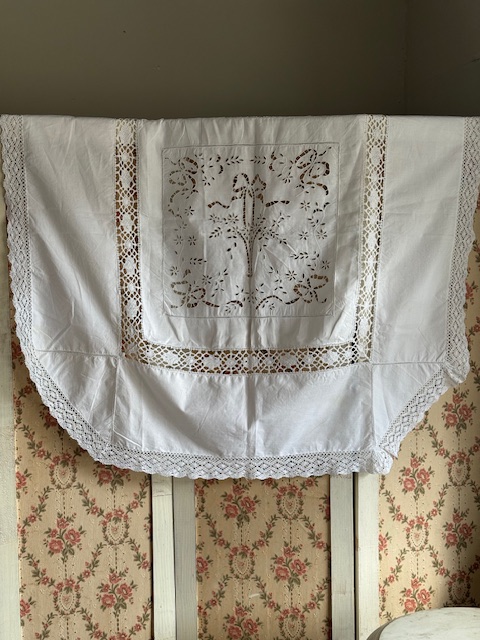 フラワーバスケット&リボンモチーフ カットワーククロス
