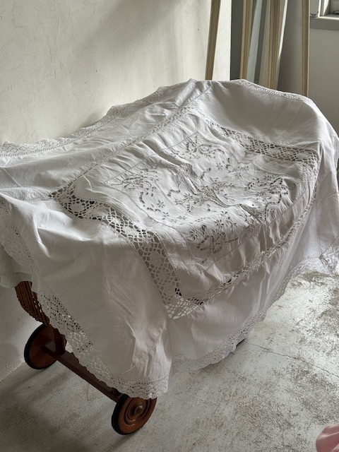 1900年代初頭のフランスで丁寧に手仕事で仕立てられた非常に美しいリネンクロスです。