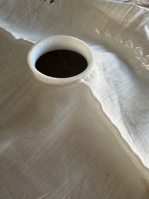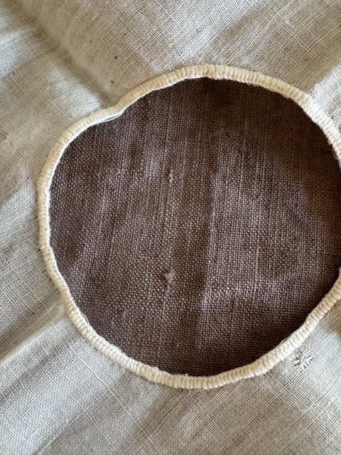 中央のランプを通す丸い開口部もぐるりと丁寧に手縫いで始末されており100年以上前の職人が手をかけたそのままの姿で残っていることがうかがえます。