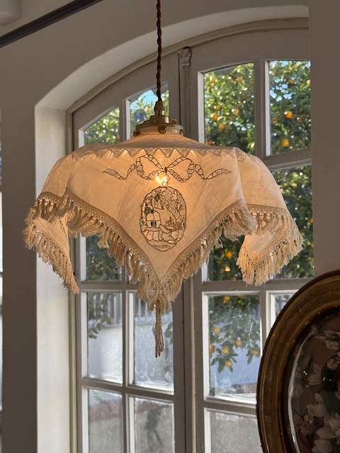 灯りを灯すと影のレース模様がふんわりと広がり消灯時でさえ佇まいに息を飲むほど美しい唯一無二のランプカバーです。
