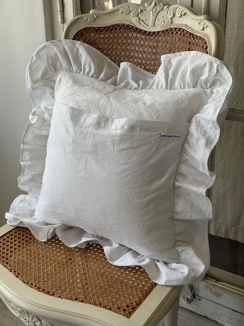 厚手でしっかりとしたホワイトリネンを使用した、大変贅沢なクッションカバーです。