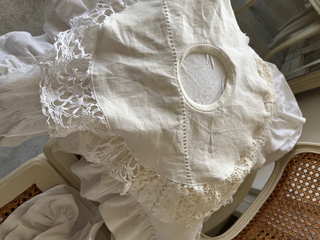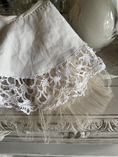 また、アンティーク品の特性上チュール部分には小さな穴や経年による風合いが見られる箇所がございます。