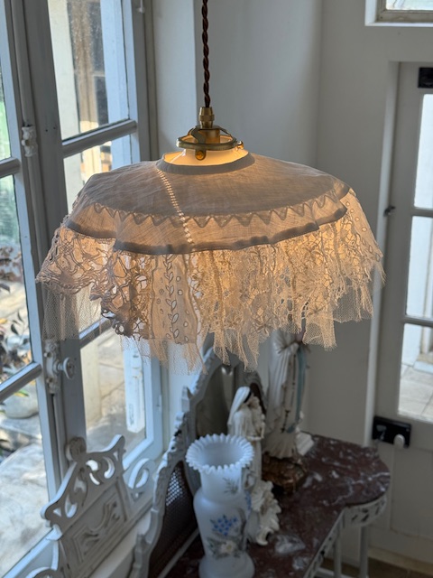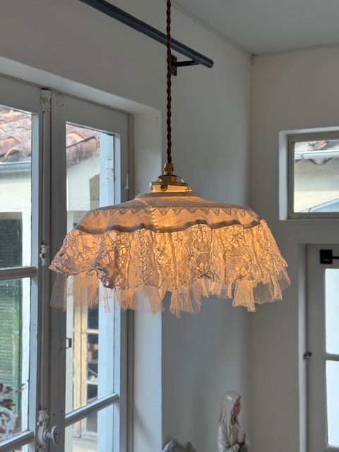 手仕事の美しさが詰まったフランスアンティークシェードカバーです。