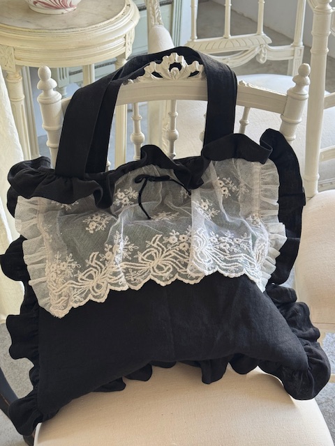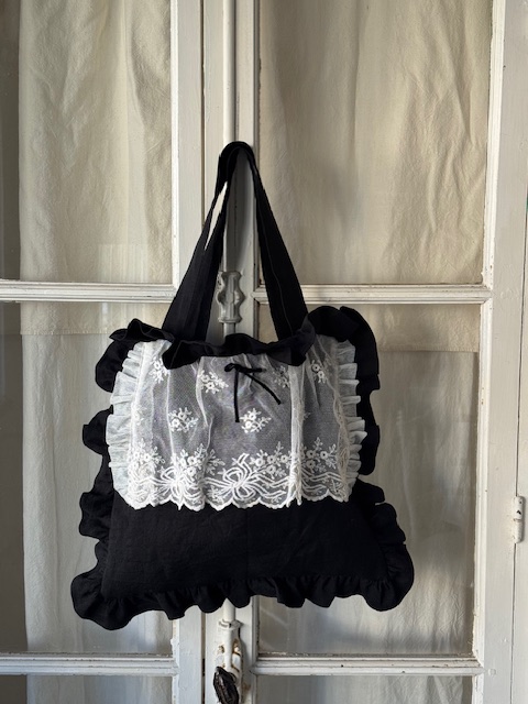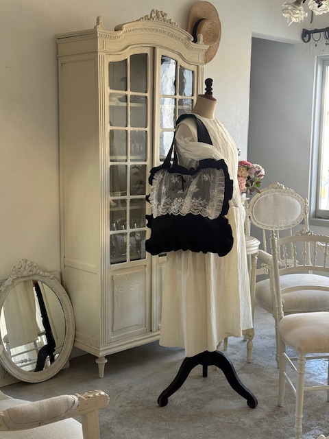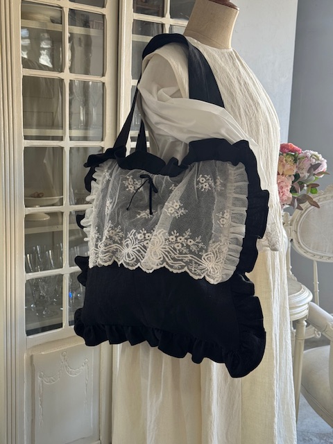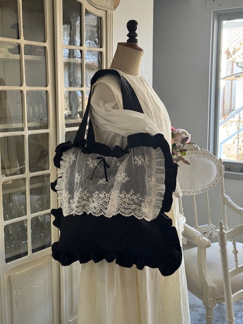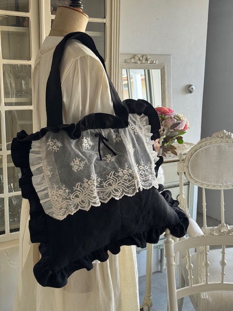 1900年初頭のフランスアンティークチュールを贅沢にあしらったディフェランスオリジナルの一点ものバッグです。