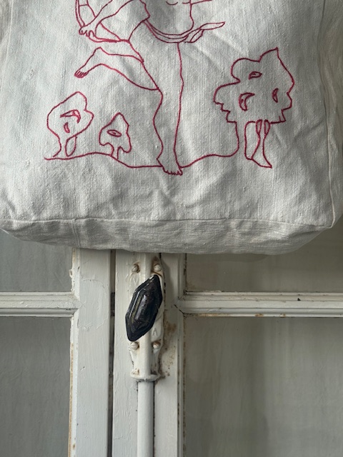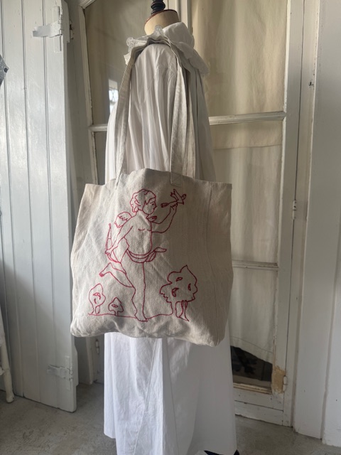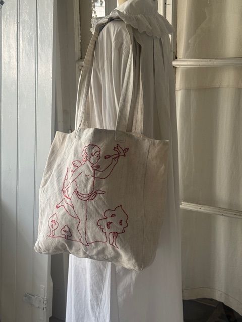 1930年代 フランスアンティークファブリック リネンバッグ(天使の手刺繍)