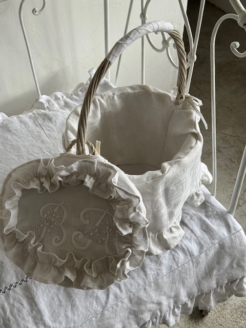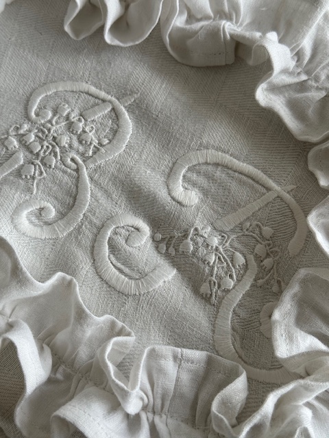 美しい当時の大きめ手刺繡イニシャルが施されています。