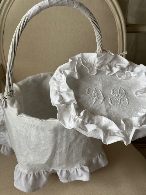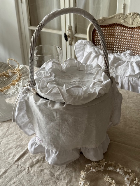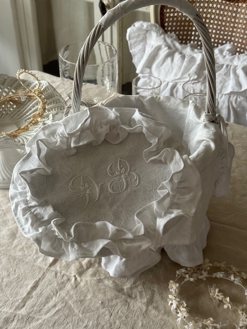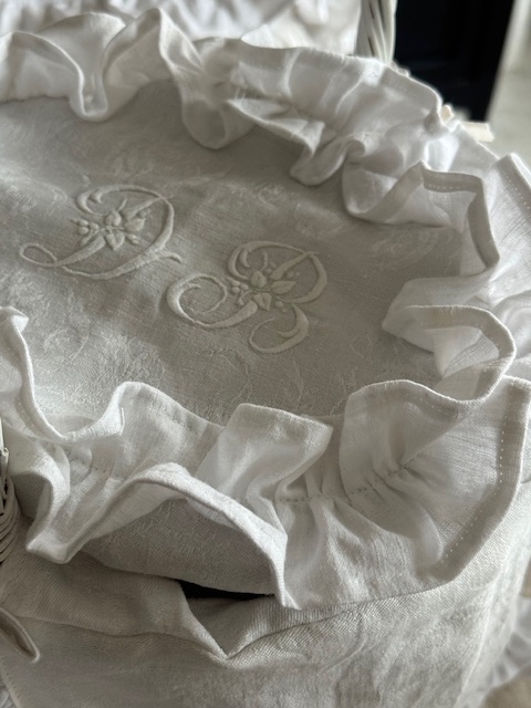 美しい当時の大きめ手刺繡イニシャルが施されています。