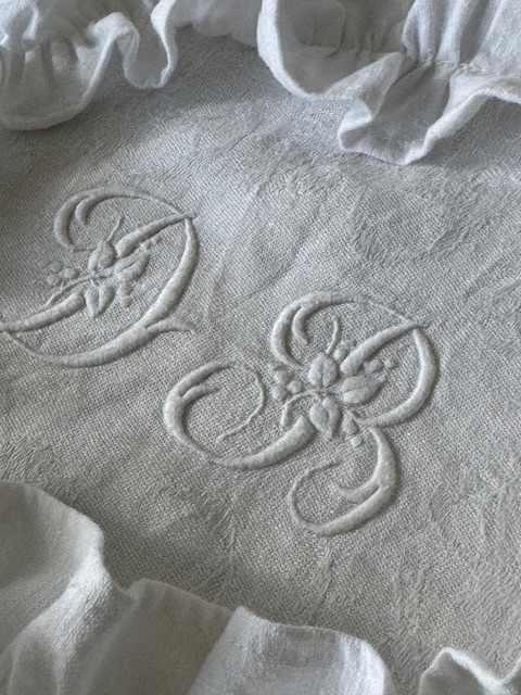 美しい当時の大きめ手刺繡イニシャルが施されています。