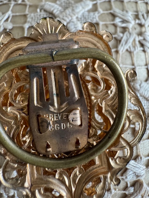 これはフランスで19世紀から1968年頃まで使われていた特許表示で刻印のBREVETÉ SGDGはフランス1850〜1968年の特許刻印で特に1900年前後の装身具に多い刻印です。